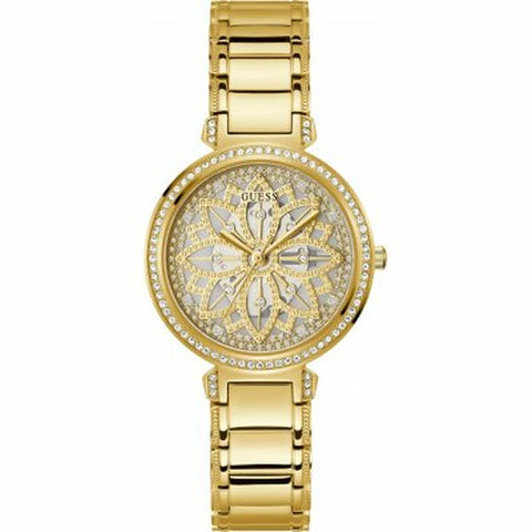 The Guess women's watch is an elegant and sophisticated accessory designed for those who value the perfect blend of style and functionality. It features a gold-tone stainless steel strap that provides durability and a shiny finish, ideal for everyday wear or special occasions. The stainless steel case ensures long-lasting protection for the internal mechanism against shocks and wear. Its gold dial complements the overall look of the watch, offering a uniform and striking appearance that suits various outfits. Additionally, the mineral crystal covering the dial offers good scratch resistance and ensures readability in different lighting conditions. This watch is specifically designed for women, incorporating details that highlight femininity without compromising the device’s sturdiness. It combines quality materials with timeless design, perfect for those seeking a distinctive yet practical accessory. Overall, this Guess watch represents a balanced choice for those wanting a reliable and visually appealing product within the female stainless steel and gold-tone watch segment.